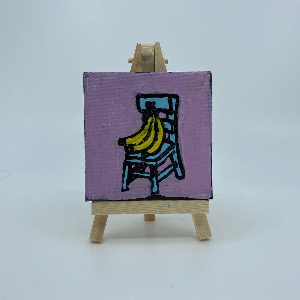 enormous bunch of bananas on a tiny blue chair